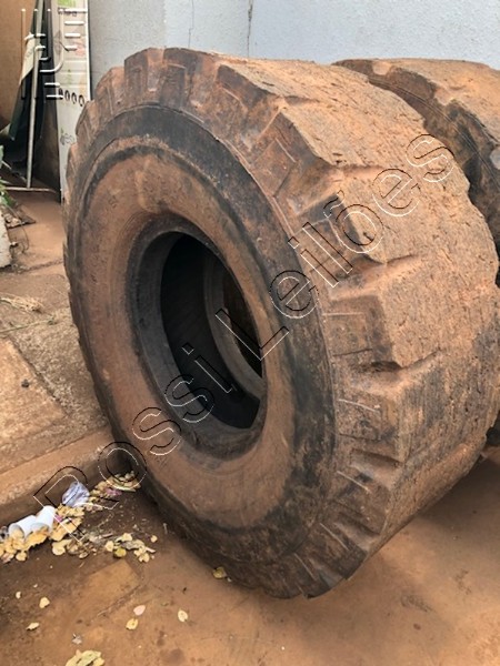 LOTE COM 04 PNEUS 1800x25, SENDO: 1 Reformado e sem uso, apos reforma, 1 meia vida E 2 gastos e necessitando de reforma.