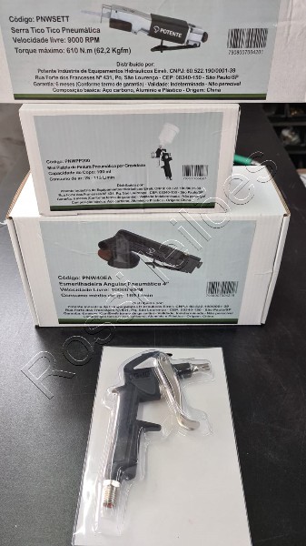 ( 4 itens) 1 esmerilhadeira angular pneumática 1 pistola de pintura 1 serra tico tico pneumática 1 bico de sopro itens sem uso.