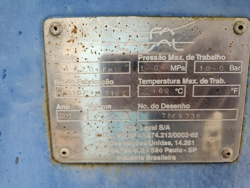 Larg 650 x Alt 1200; 16 Placas - Marca: Alfa Laval; Mod.:AF20-FM