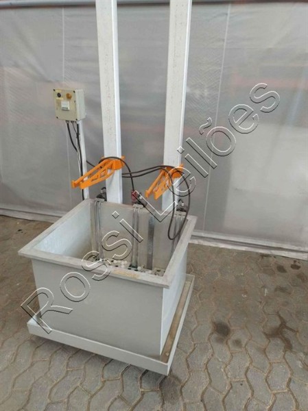 TANQUE DE POLIPROPILENO INDUSTRIAL VOLUME 180 litros Aquecimento por resistências e controle Eletronico , Suporte de regulagem e rodinhas. Equipamento usado, no estado e sem garantias, somente o que está na foto. Podendo apresentar avárias , falta de peças e componentes. Obs.: Os dados informados são de responsabilidade da vendedora.